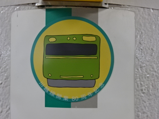 川越線開業80周年記念シール貼付の駅名標